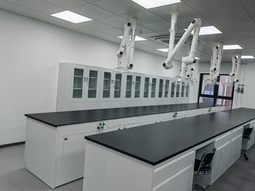 1.材 料:櫥柜柜門采用了12.7mm厚威盛亞實芯化學實驗操作板,邊沿加厚為25.4mm,耐浸蝕、防水性、耐溫度過高耐腐、耐抵抗、始終不變形、無臭無毒、易清理、并具備著不錯的承載使用性能。